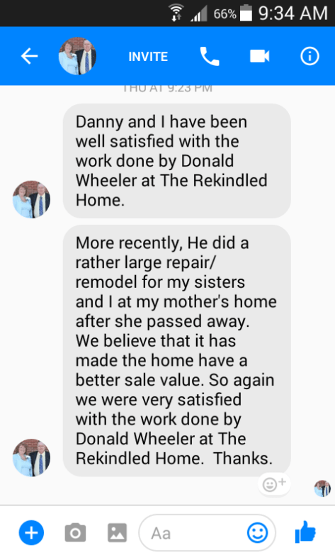 “My husband and I just had our bathroom remodeled. Donald and his son did an excellent job. Very thorough, clean and professional.